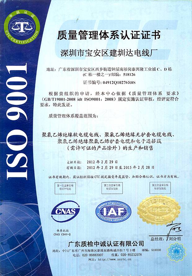 深圳建圳達電線電纜有限公司,成立于2000年,是一家電線電纜制造商,我們通過了世界各地不同市場的多數(shù)認證,如:CCC、RoHS、CB、SAA、TUV、VDE、PSE、BPS、UL、CSA。我們根據(jù)定制產品不斷更新新的認證。經過數(shù)十年的發(fā)展,我們與來自世界各地的客戶建立了長期的合作關系。我們曾經是菲律賓機場,,柬埔寨的電力站,美國的醫(yī)院,工廠,埃塞俄比亞的水電站項目。我們是一家值得信賴的電線供應商。